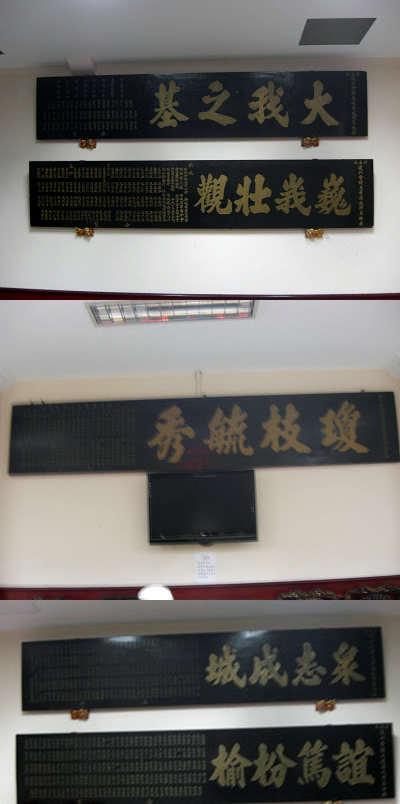 最珍贵的当然是最后这对由新加坡清朝第一任总领事时所题写的楹联,用的是其所擅长的隶书。这对楹联原来是放在天后宫的柱子上,后来移到会馆的大厅里。黄遵宪是广东客家梅县人,1891年到1894年出任清朝驻新加坡的第一任总领事。当时华人移民大多来自中国福建、广东各省,不懂普通话,所以有“入耳尽方言,听海客瀛谈,越人乡语”之说。“大秦”与“拂箖”都是指东罗马帝国;只不过在汉、魏、晋时代,称之为“大秦”;而到唐、宋时则称“拂箖”。