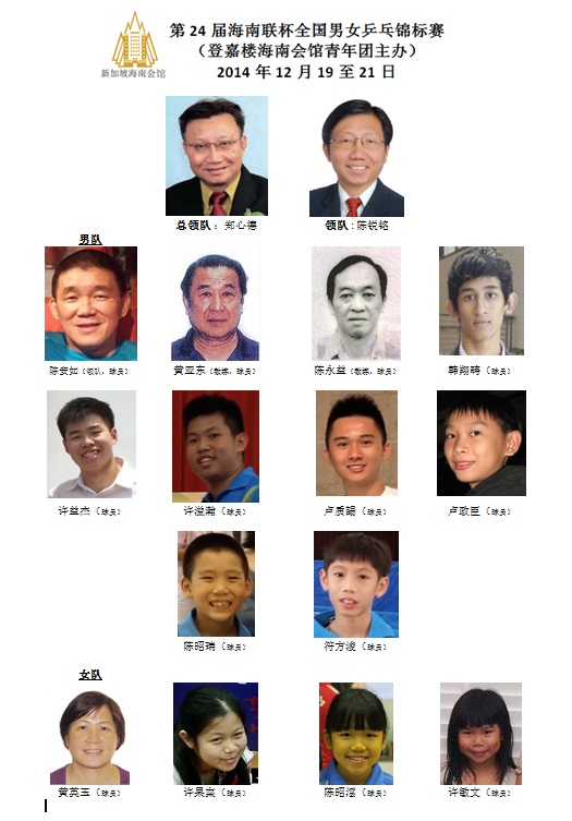 由马来西亚海南联合会青年团主催,登嘉楼海南会馆青年团主办之[第24届海南联杯全国男女乒乓锦标赛]定于2014年12月19日至21日假瓜登室内体育馆举行。