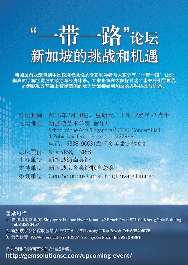 “一带一路”,中国海上丝绸之路带给新加坡的挑战和机遇论坛