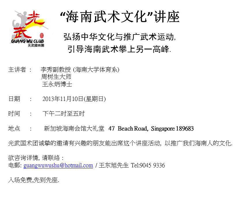海南会馆和光武国术团联办专题讲座